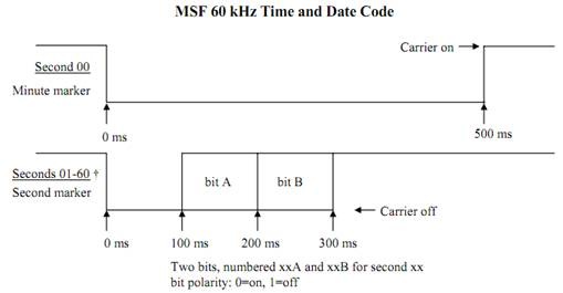 MSF发播的时间是UTC或UTC+1(夏令时开启)。