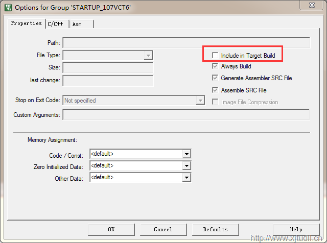 同理,如果要使用STM32F107工程,只需要包含STM32F107的启动文件;