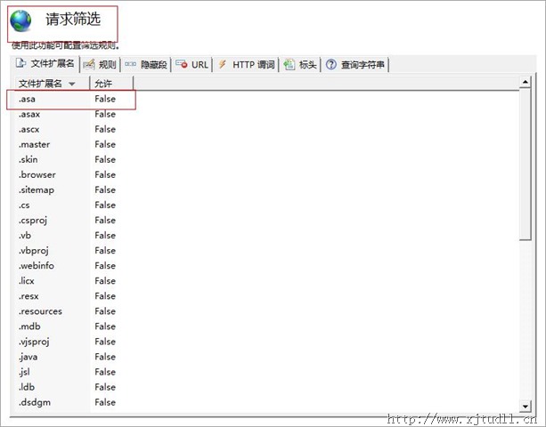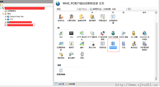 方法二:如果是iis7 在右边iis 打开请求筛选 ,扩展名中删除.config 项目