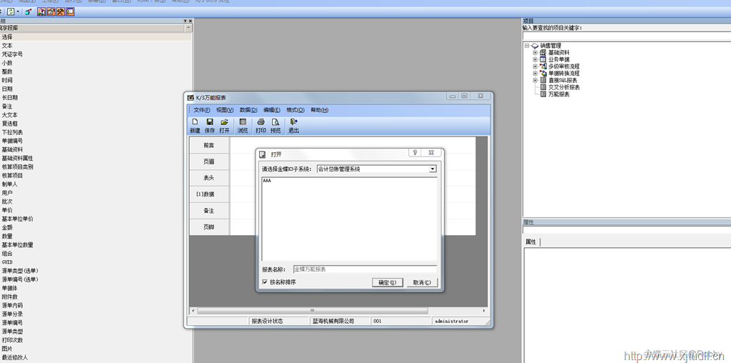 金蝶K3:自定义的万能报表位置