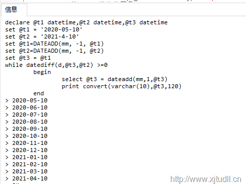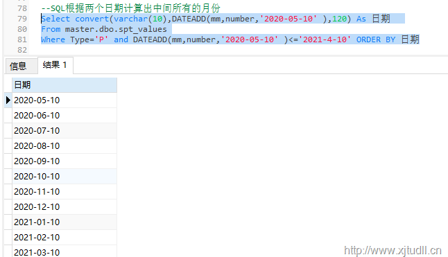 -SQL根据两个日期计算出中间所有的月份