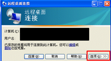 第一步:在远程桌面连接窗口,单击【选项】,如图所示。