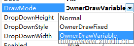 需要设置Owner Draw属性:这个属性有三个选项:No(不采用任何自绘),Fixed(固定属性的列表高度和宽度),Variable(改变列表的高度和宽度).最直白的理解分别是:不响应DrawItem()、响应DrawItem(不响应MeasureItem)、响应MeasureItem(也响应DrawItem)。也就是说,需要将三个风格严格对应起来。